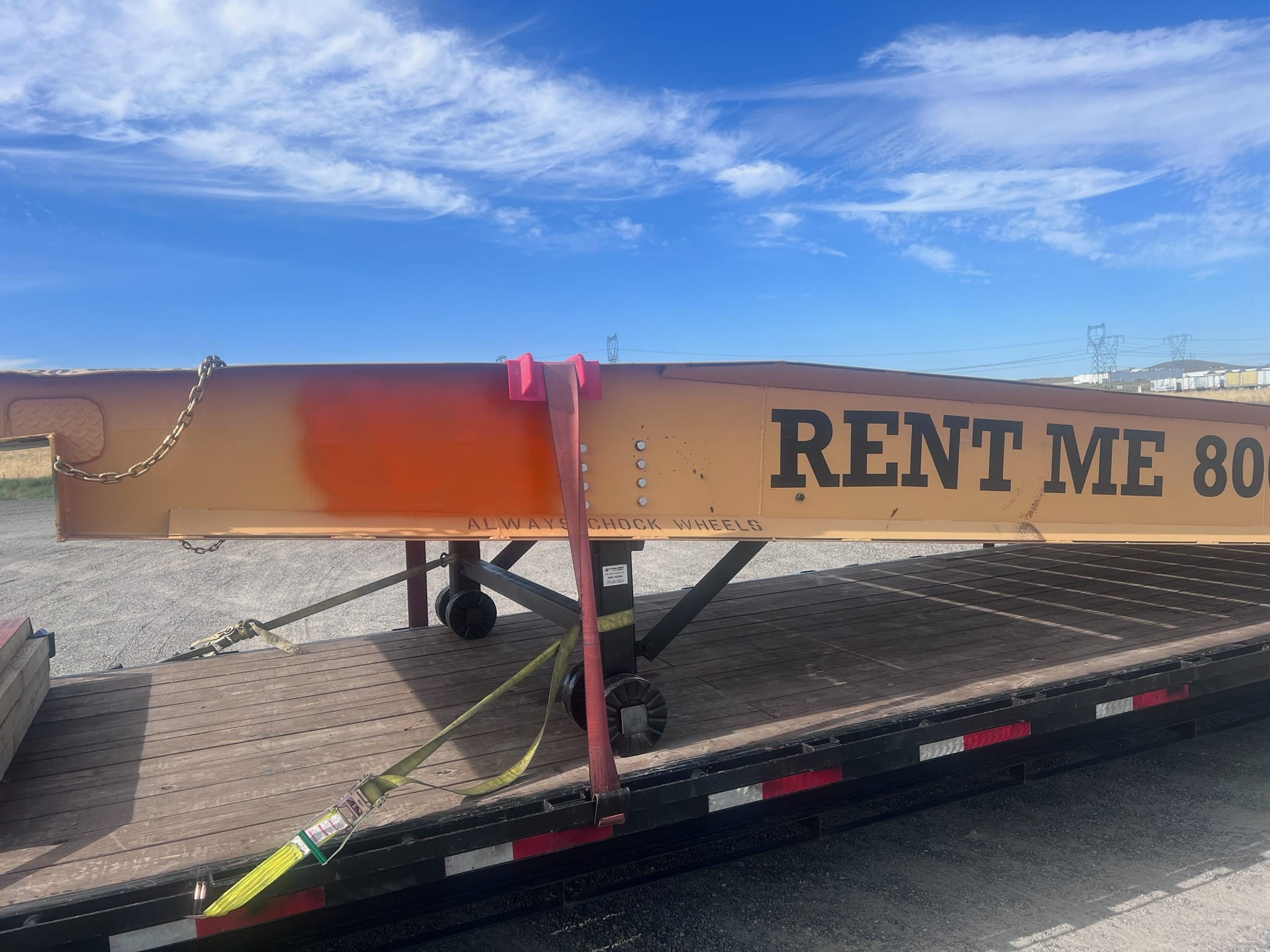Your yard ramp will arrive at your location strapped to a flatbed. To remove your yard ramp, lift it using a crane (preferable) or a forklift (or two) and drive the flatbed out from under the ramp.