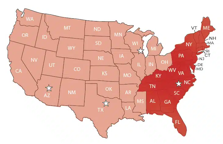 Select your region from the table below to see the capacity, width, and length options of the yard ramps readily available in your area. Give our ramp experts a call today at (262) 537-5377 for a shipping quote!
